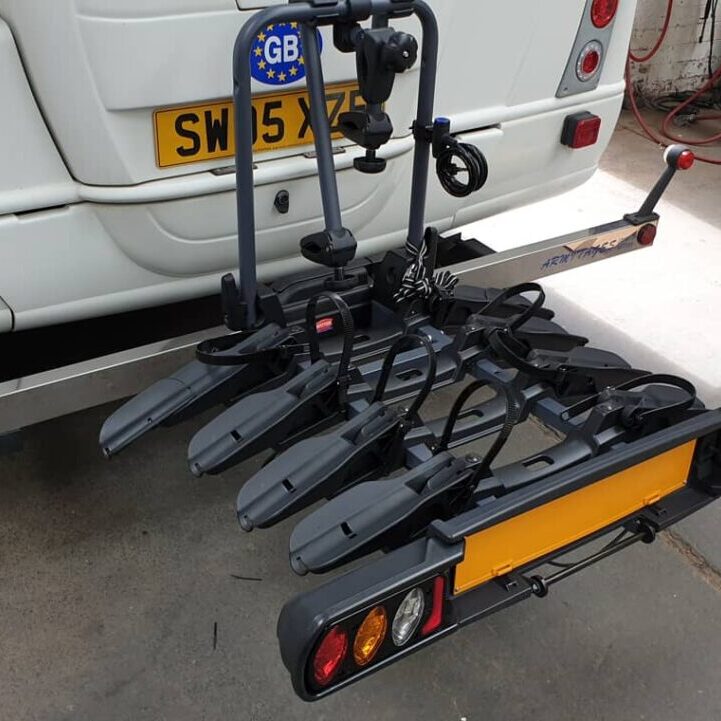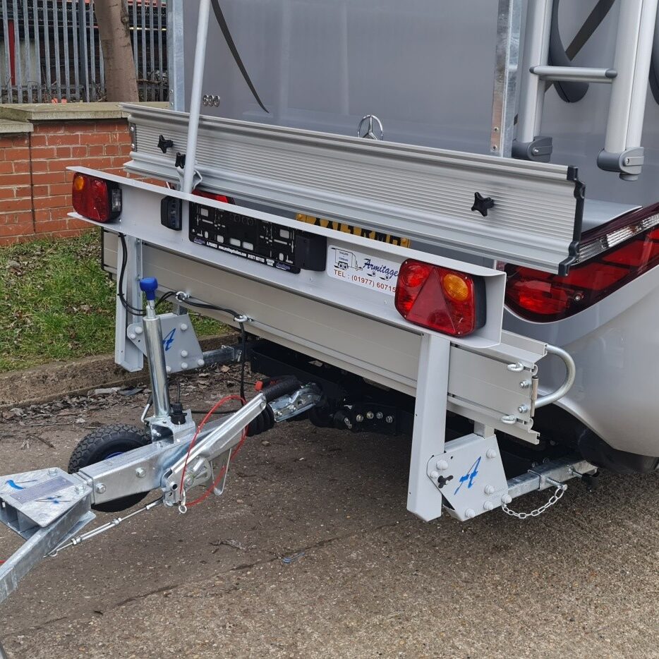We can also add a mirror finished stainless steel covered Under-run bumper protection beam to type approved towbars or as a stand alone, when a towbar is not required or even built in as a towbar for pre April 2012 model motorhomes. As a one stop shop we can fit electrical items such as reversing sensors & cameras, Solar panels, Air assist rear suspension, the NEW HY4 self levelling systems by Al-Ko, spare wheel carriers.