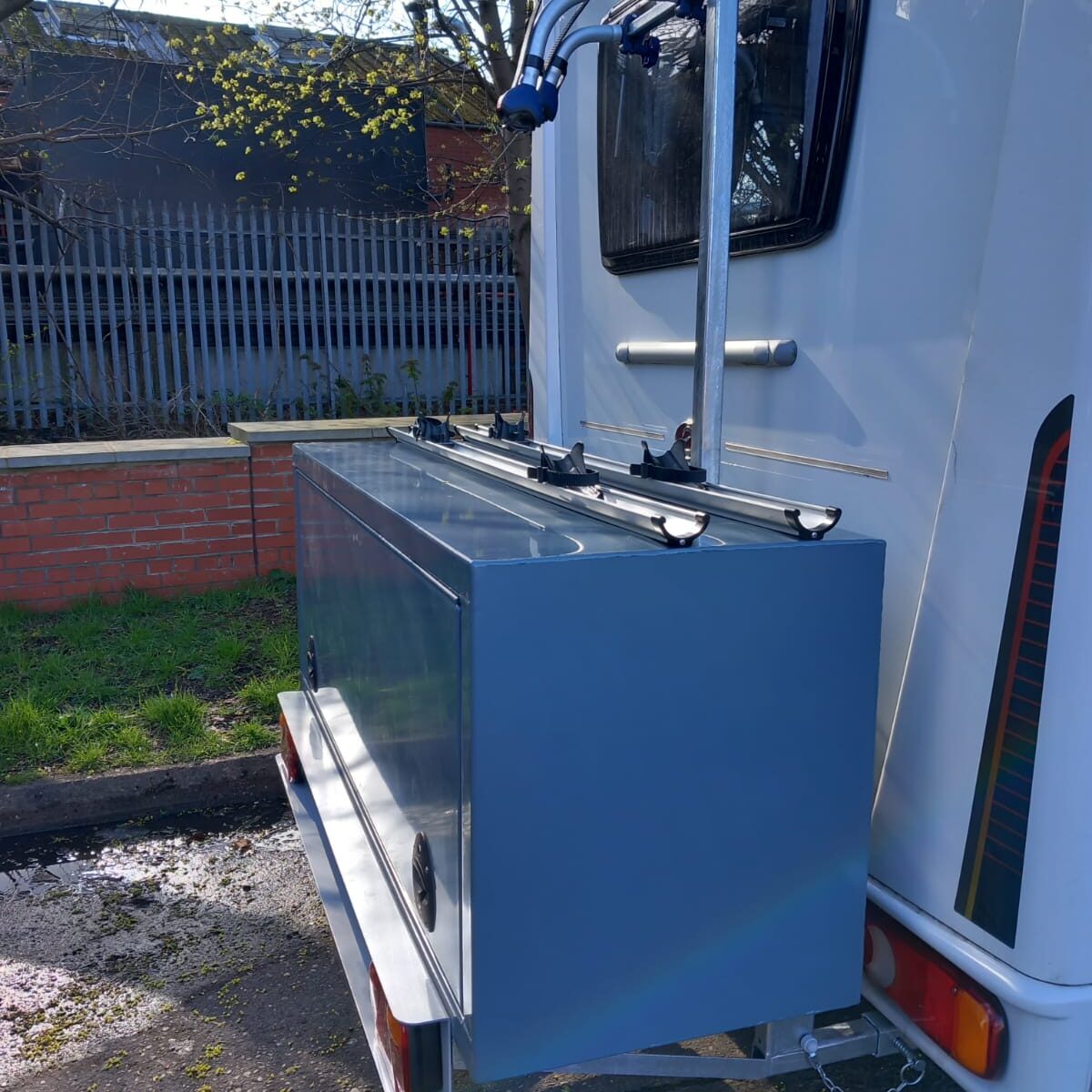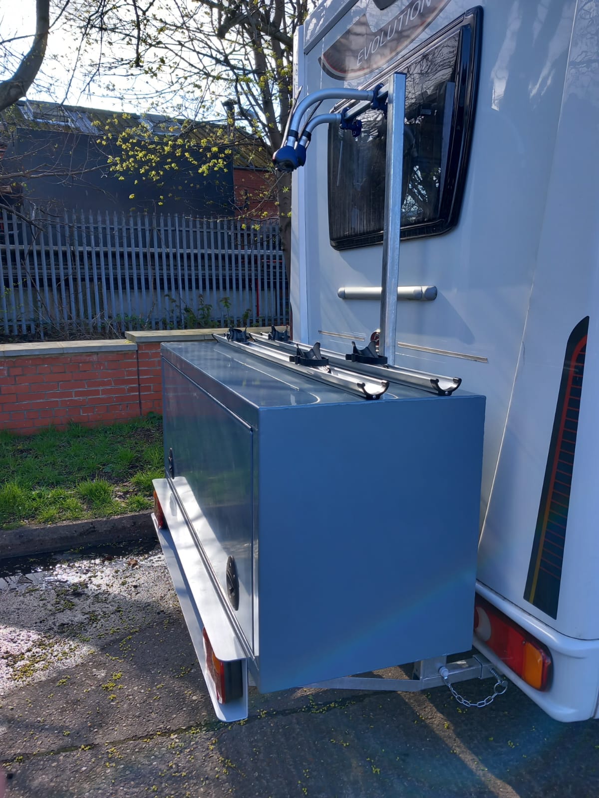 We can also add a mirror finished stainless steel covered Under-run bumper protection beam to type approved towbars or as a stand alone, when a towbar is not required or even built in as a towbar for pre April 2012 model motorhomes. As a one stop shop we can fit electrical items such as reversing sensors & cameras, Solar panels, Air assist rear suspension, the NEW HY4 self levelling systems by Al-Ko, spare wheel carriers.