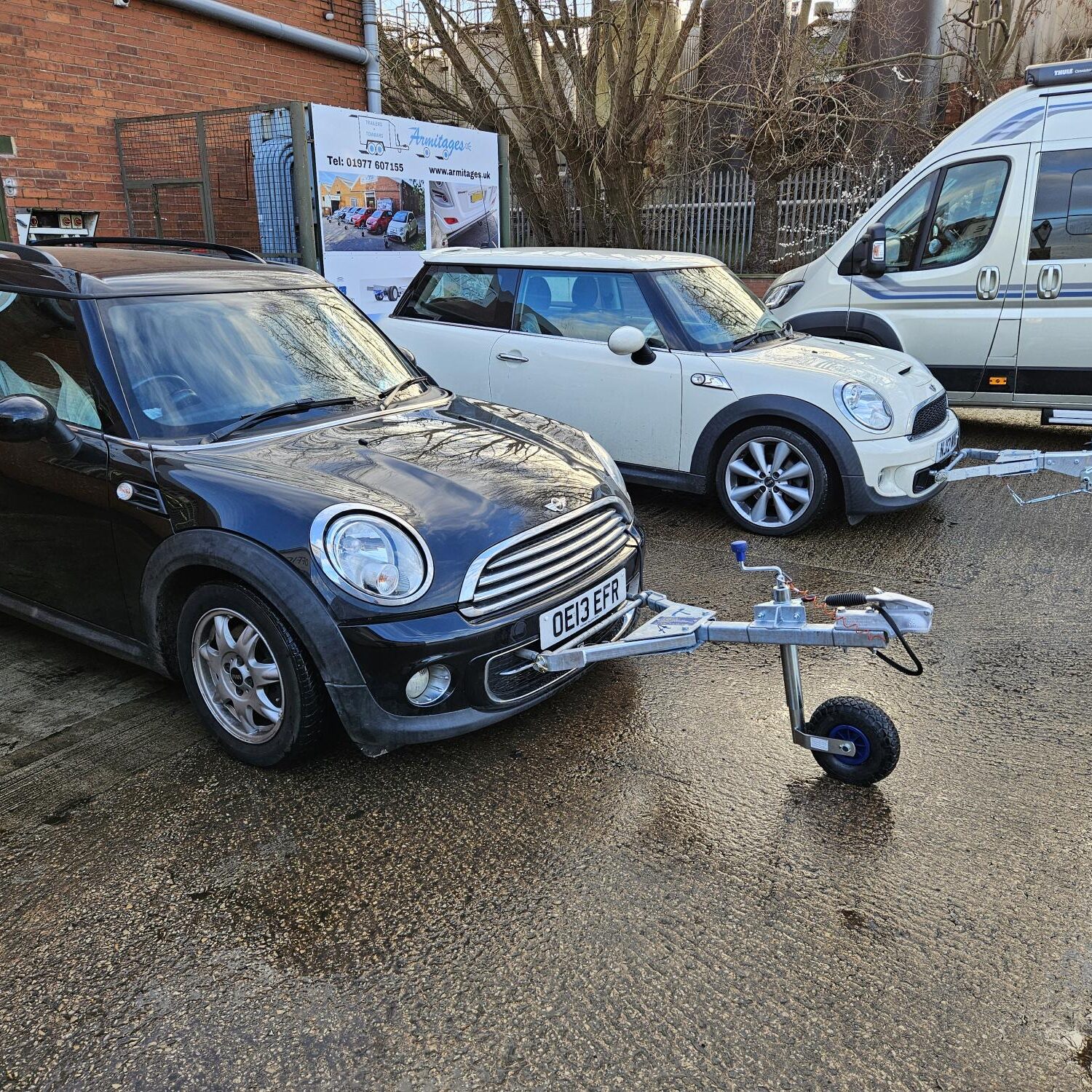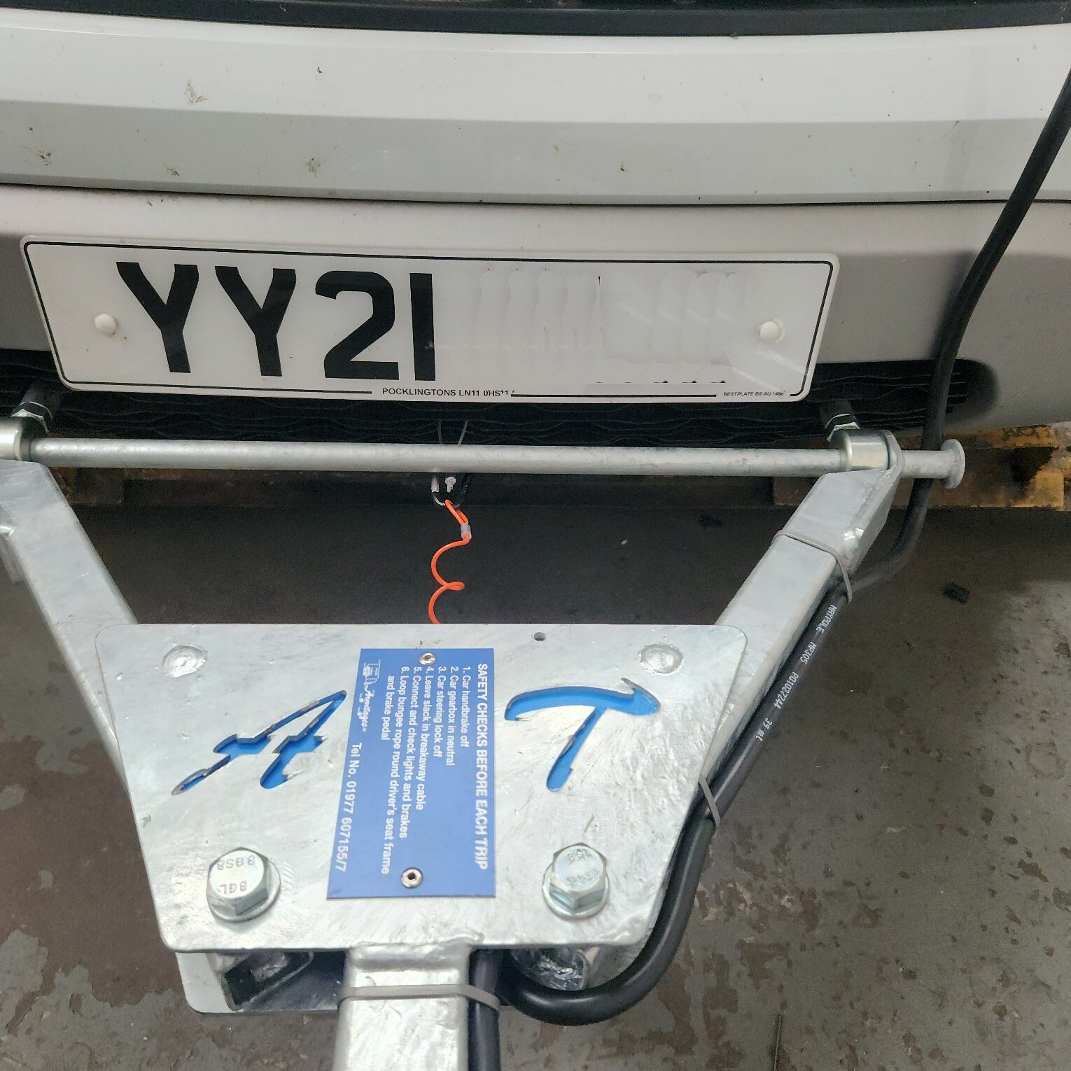 You may also be happy to know, unlike most other electrically braked A frame installers who can only convert a select few vehicles where they only have to weld another towing eye in the existing steel crash beam, we will replace the original with a reinforced version suitable to tow from (front end towbar) for long distances year after year without the risk of them pulling out under strain. This also means there’s not a vehicle we cannot convert for A frame towing up to the weight limits specified and providing the vehicle can be towed on all 4 wheels of course for long distances at speed i.e. be careful with certain 4 x 4 vehicles and automatics, so always check that the vehicle you want to tow can be towed in this way before bringing it in to be converted as Armitages cannot be responsible for any damage caused to gearboxes etc. because they are not suitable to be towed on all four wheels.
