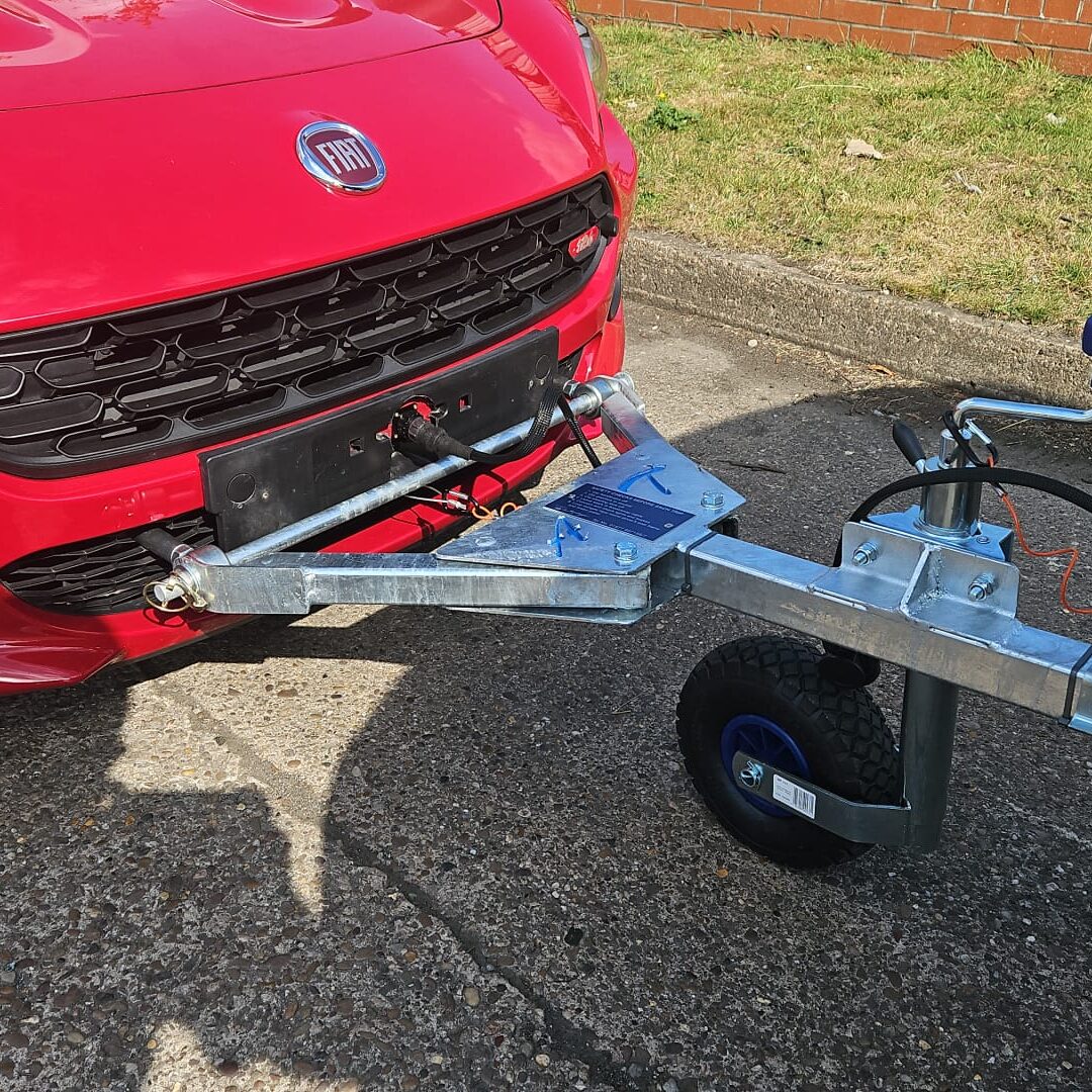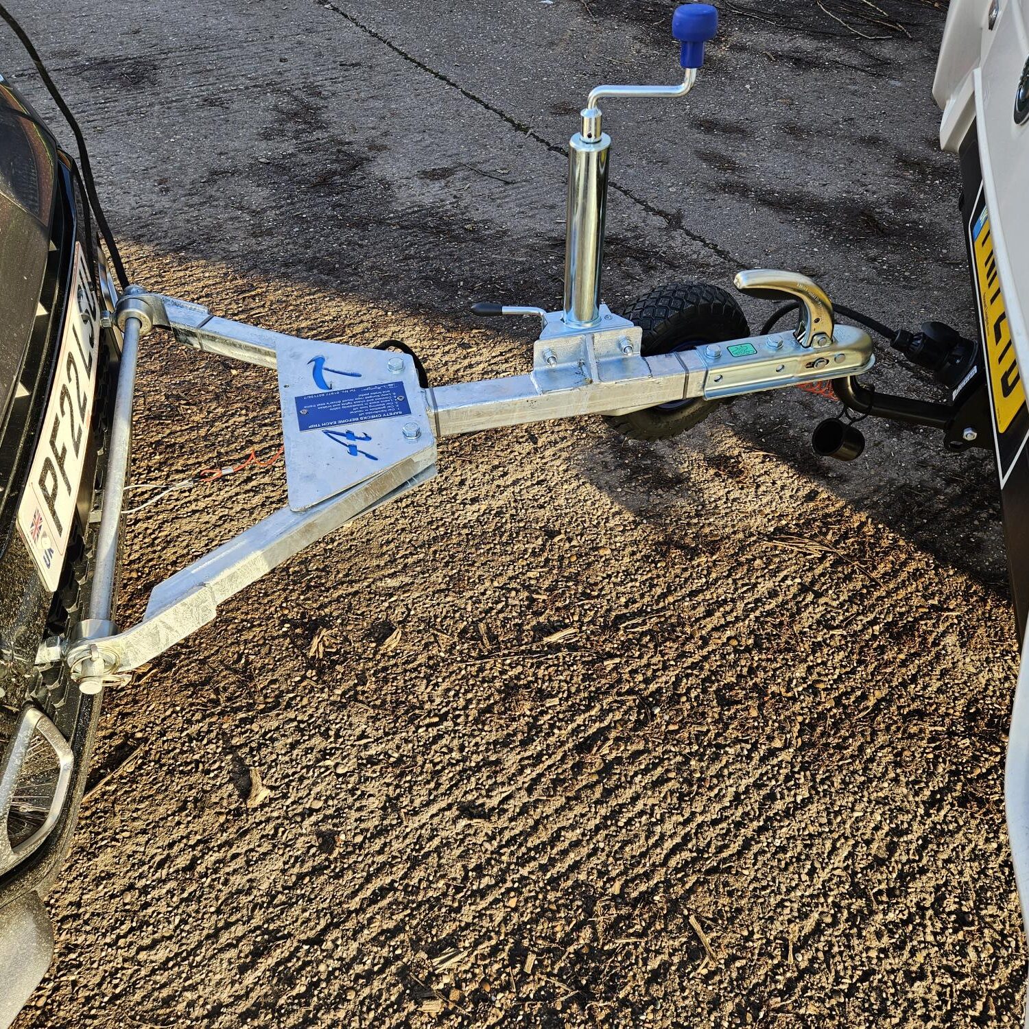 Electronically braked A frames for those that require a lighter A frame weighing in at 11kg on vehicles up to 1300kg & 16kg for vehicles from 1300 – 2750kg as opposed to the Over-run braked a frame weighing in at 22kg for vehicles up to 980kg & 28kg for vehicles weighing 950 – 1550kg, so half the weight. This is also the only way we can convert vehicles weighting over 1550kg all the way up to 2750kg providing your Motorhome has the towing capacity to do so of course. There’s a large No of Motorhomes that can pull up to 2000kg and most campervans Fiat Ducato / Mercedes Sprinter etc. can tow trailers/cars on A frames from 2500kg up to 3500kg all though the maximum weight on this system is 2750kg, so this leaves you with the scope to take a much bigger family size vehicle with you.
