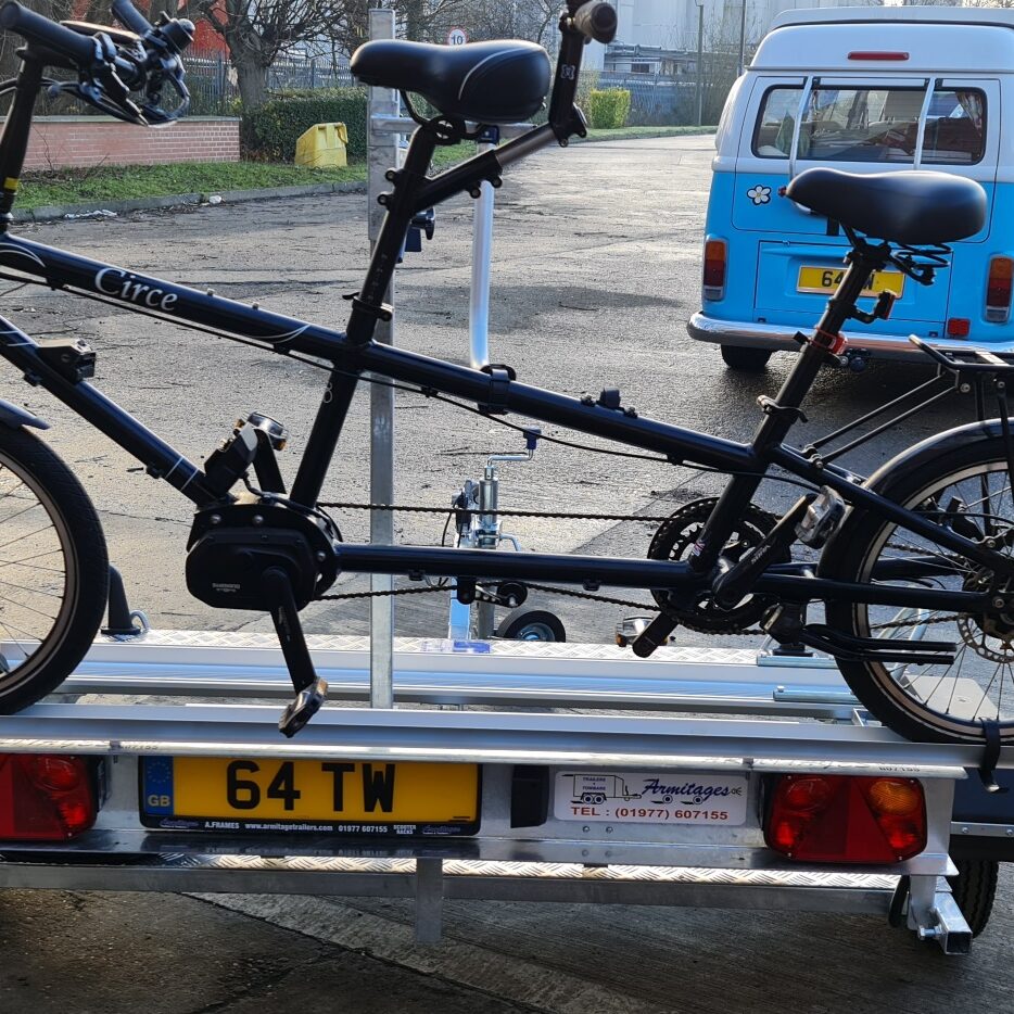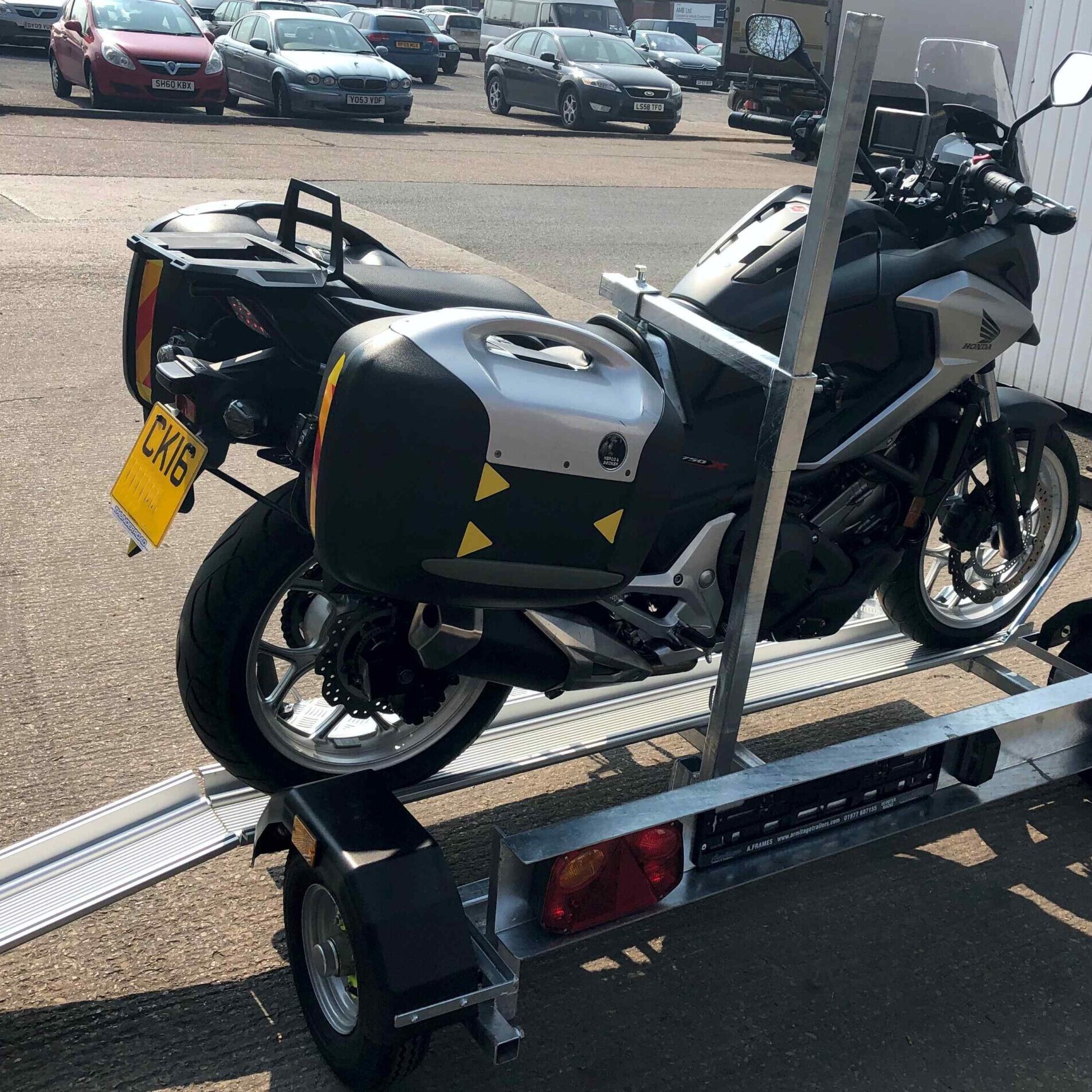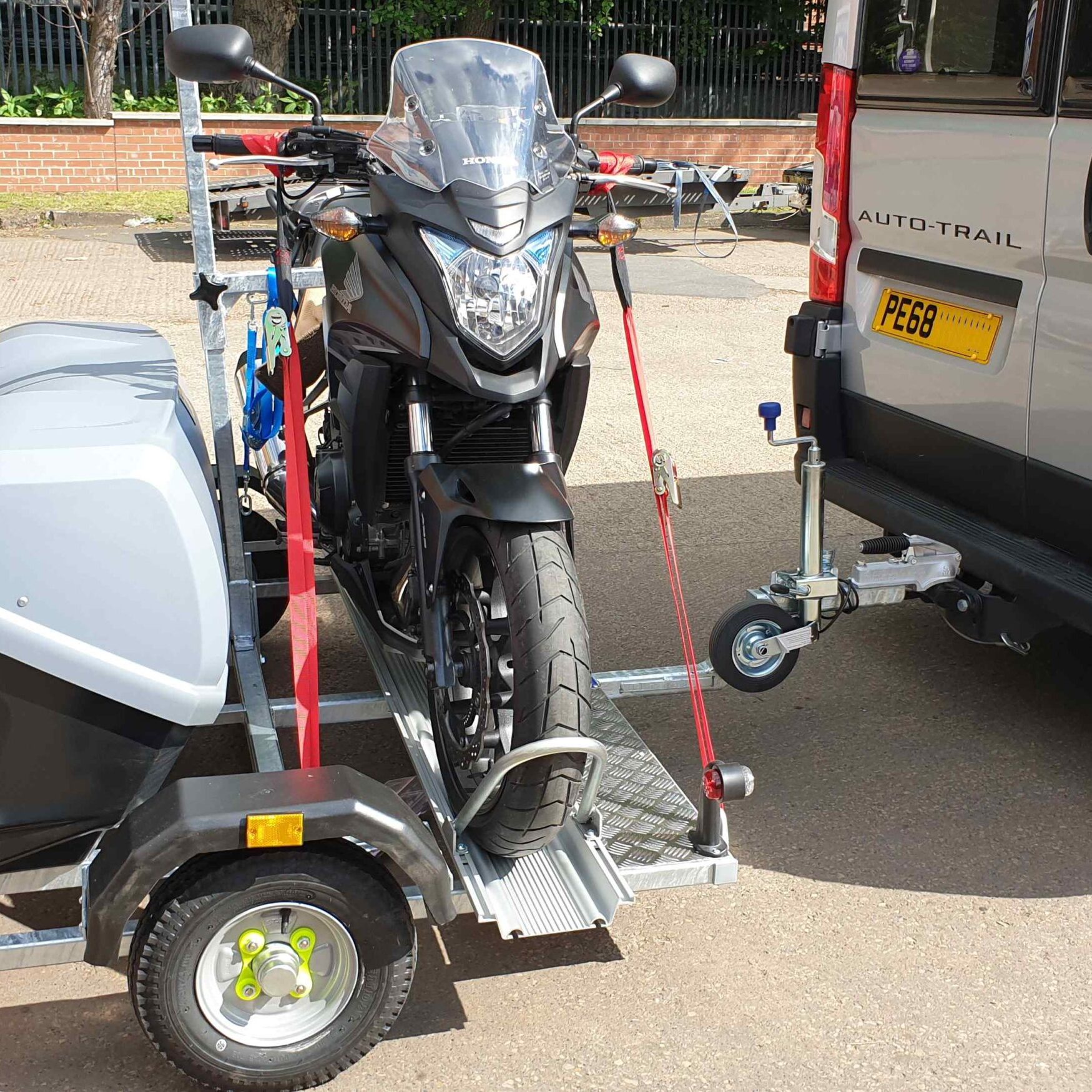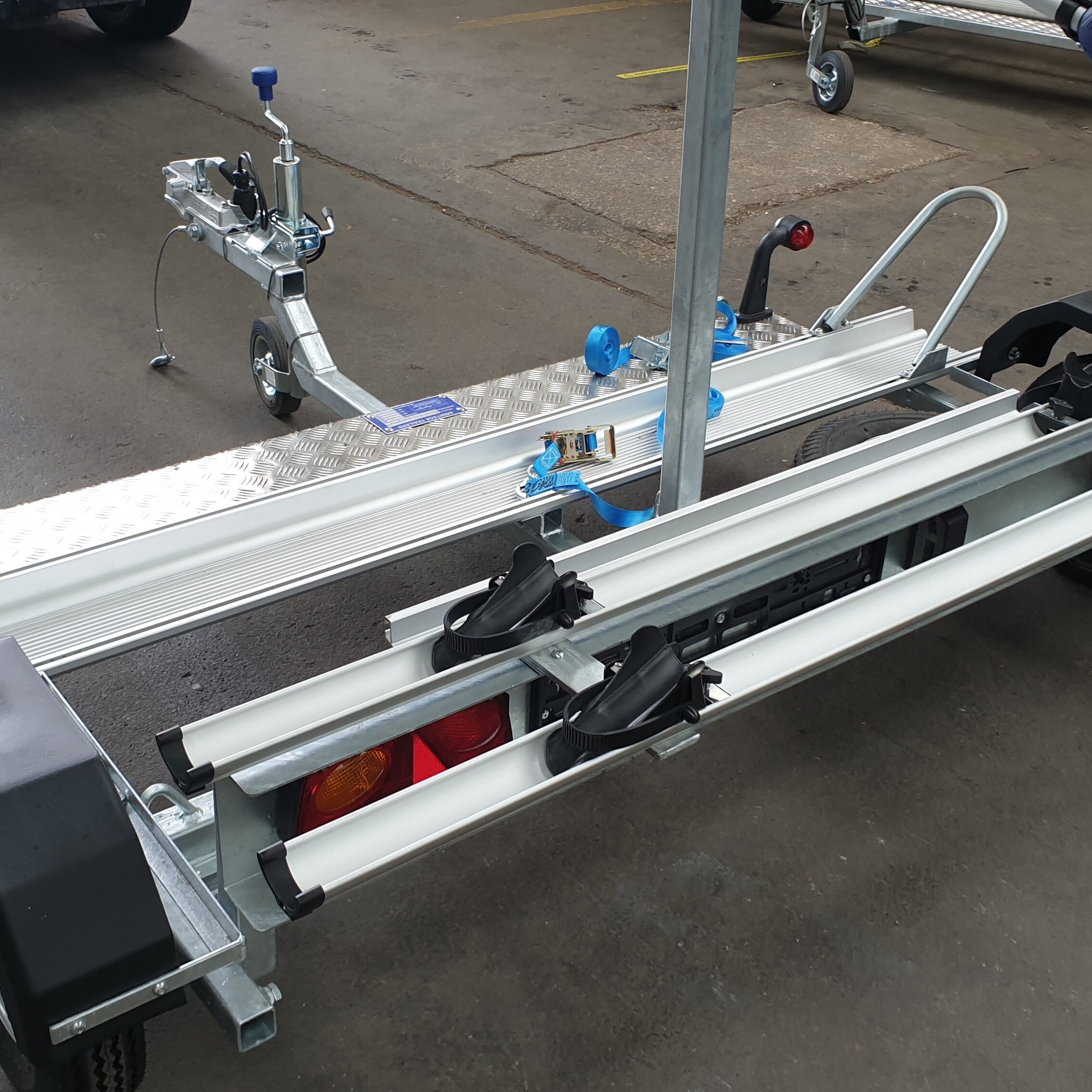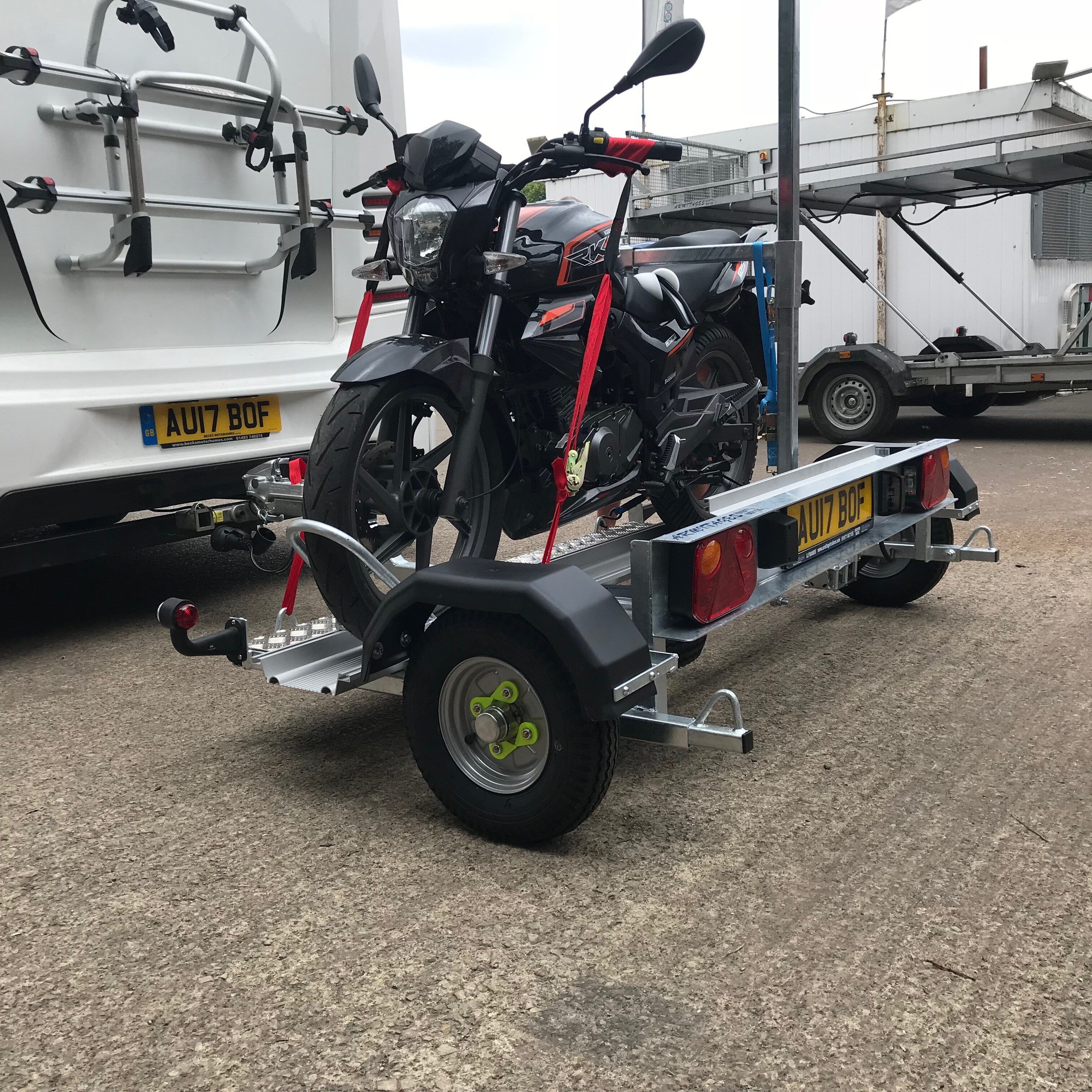 Developed from our tried and tested Standard Transverse trailer but for those that have heavy bikes and are not very confident in taking such a bike 20″ in to the air whilst still standing on the ground all though the incline is very steady with the extra long folding aluminium ramp but this is only 9″ off the ground not much higher than a tall kerb.