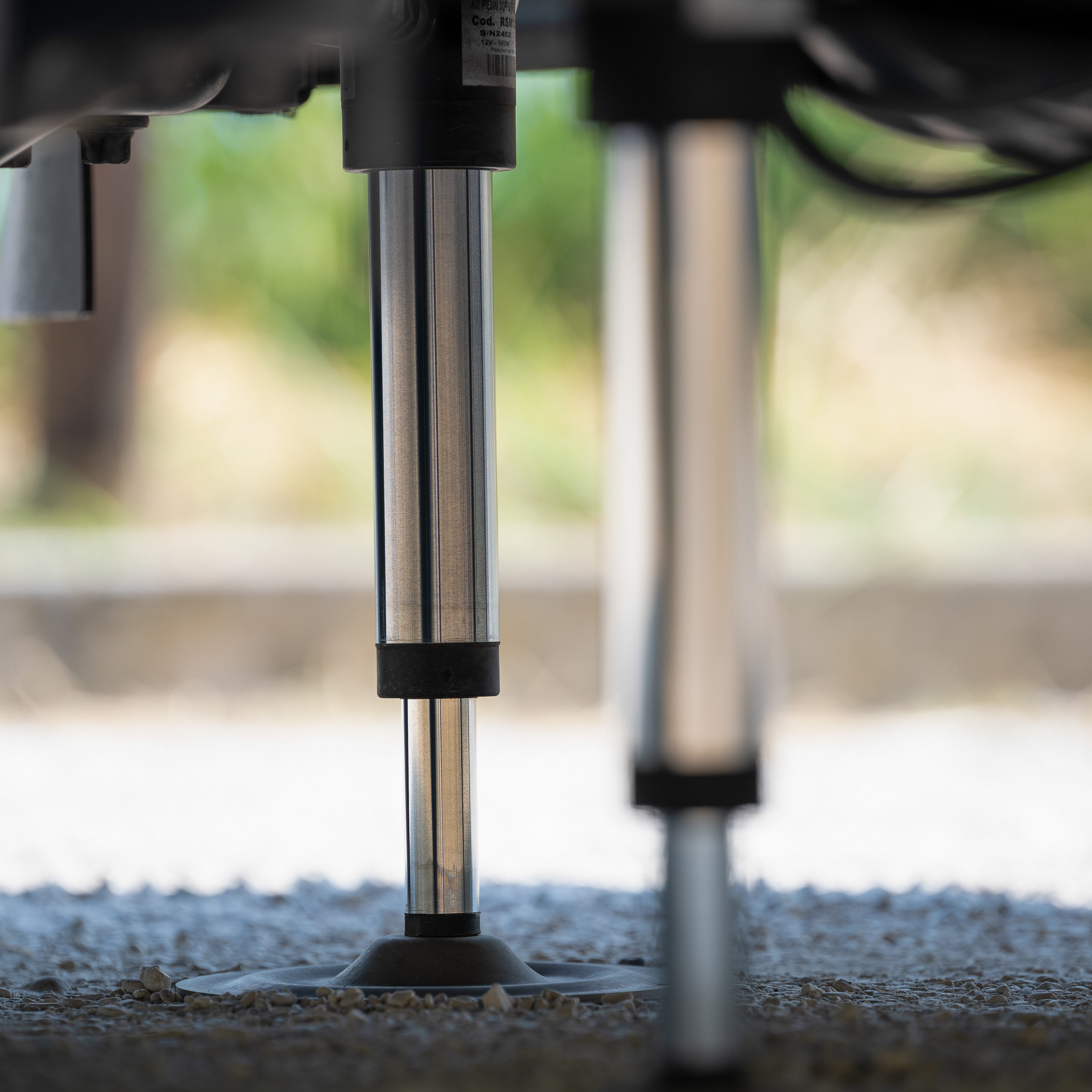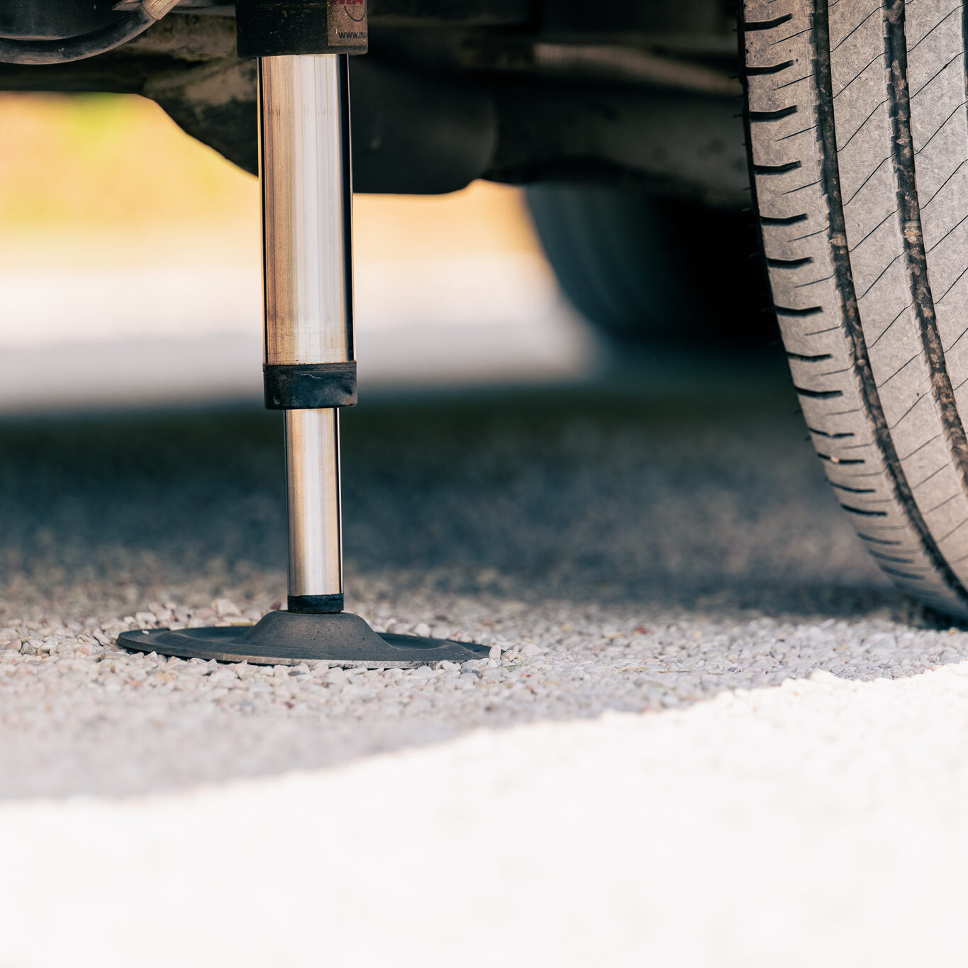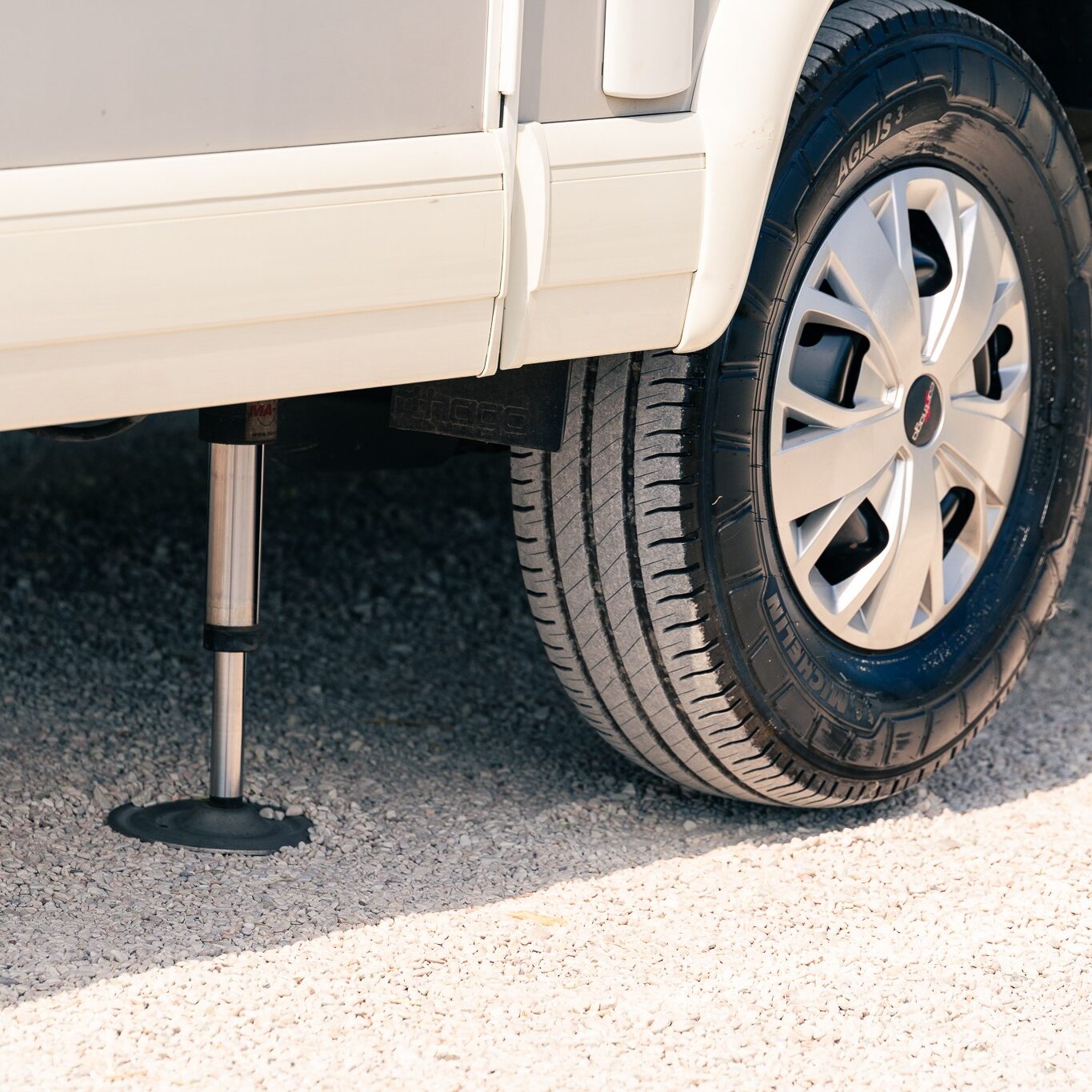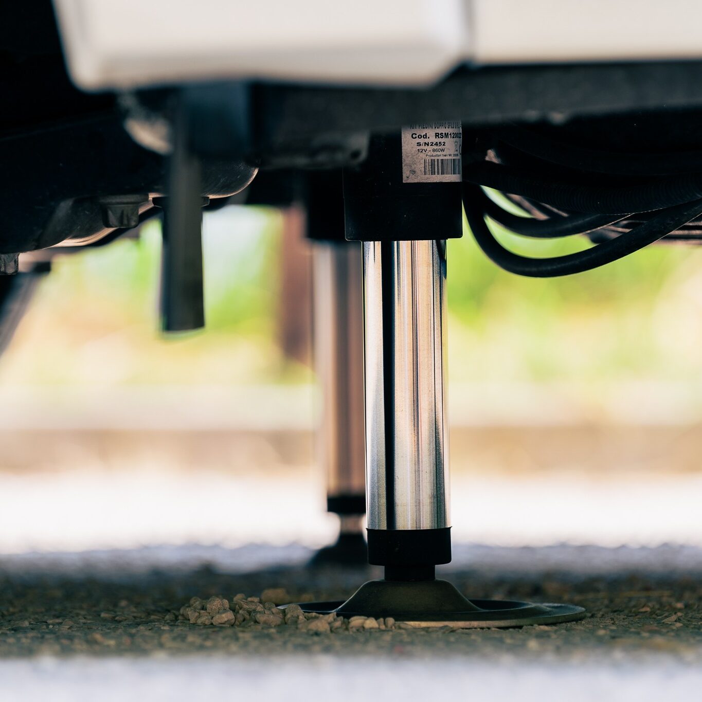 The MA-VE automatic levelling system is built with quality, comfort and reliability at the heart of it’s design. putting ease of use and customer satisfaction before all else. All of the jacks are coated in five layers of protection to maximise durability and resistance to corrosion whilst sporting extra large support plates strengthened by stainless steel ribs to help prevent sinking into the ground. The plates are also fitted with drain holes and can be rotated to suit all types of surfaces. Should the worst happen and a jack seizes or locks up a failsafe hand lever has been installed so the feet can be retracted without the potential hassle of being stuck in the air somewhere.
