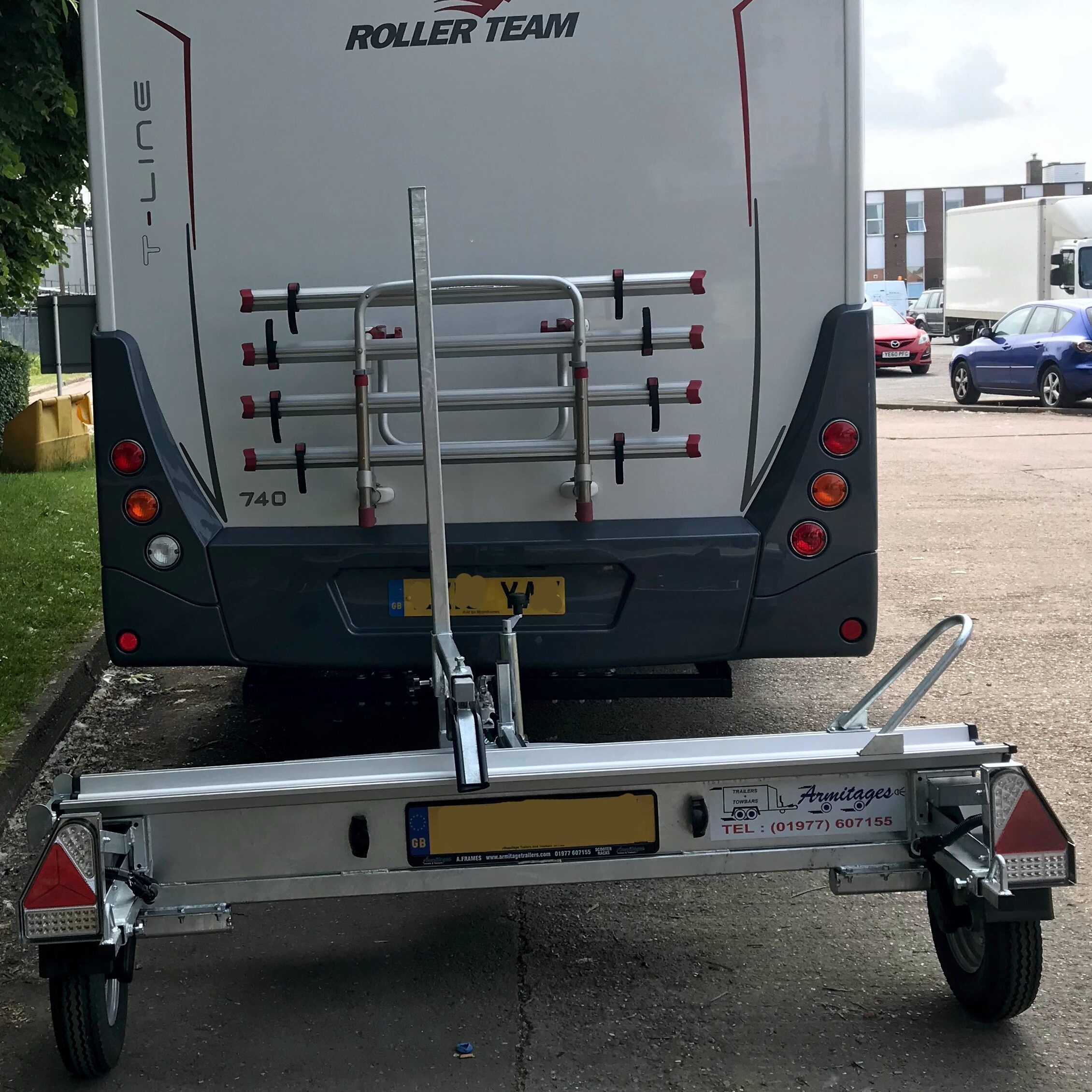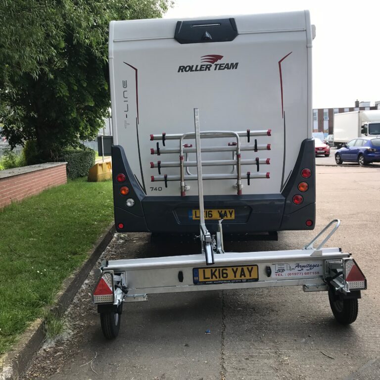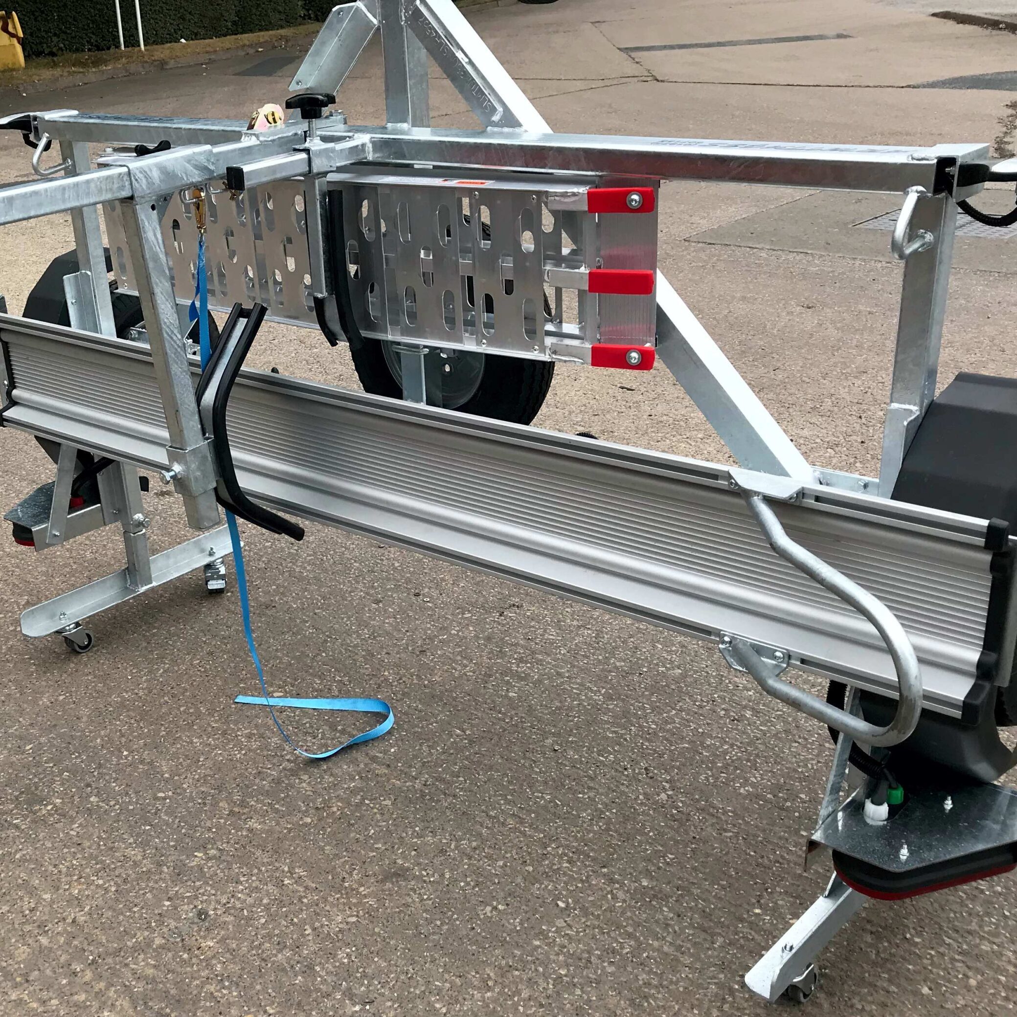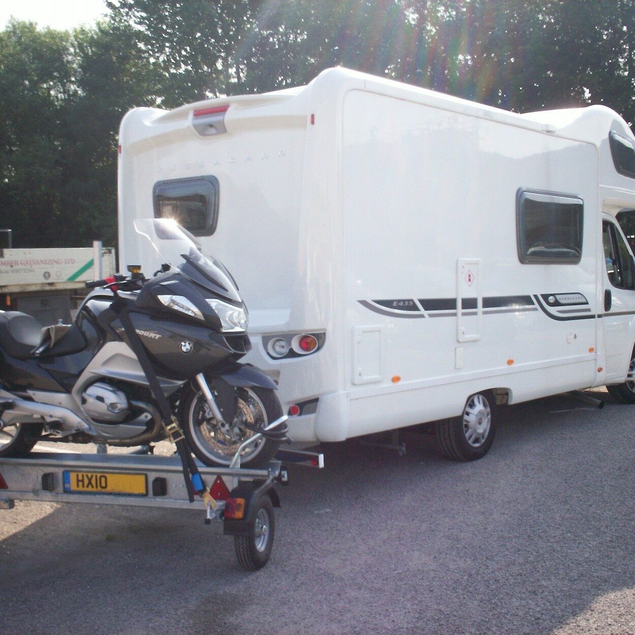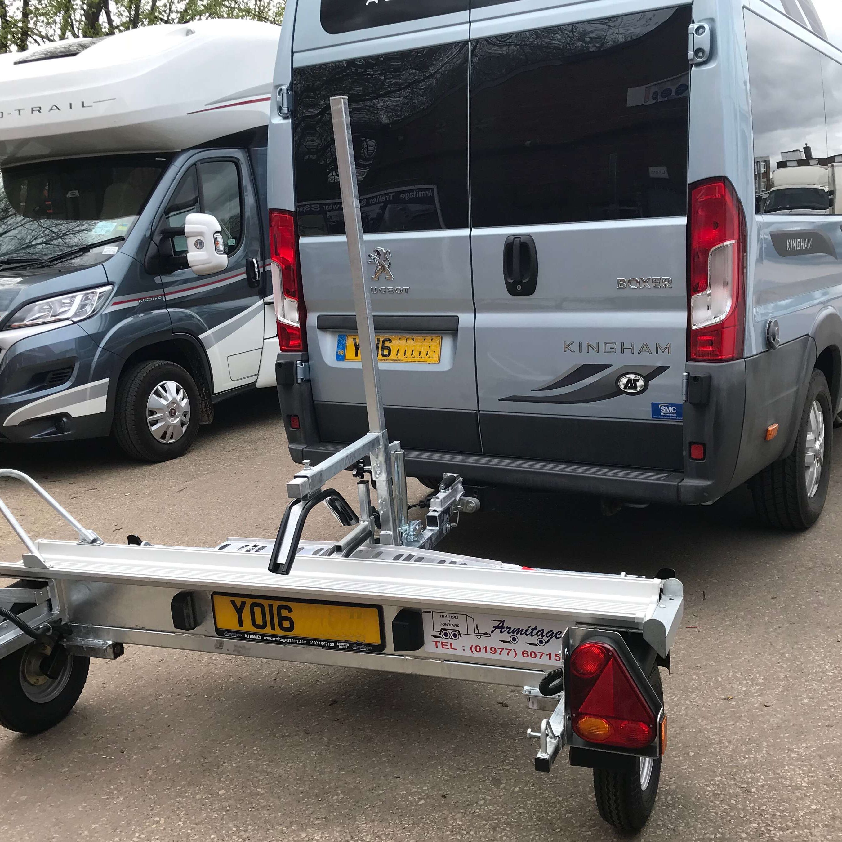 Here we have our very popular sleek premium built side loading Scooter / Motorbike trailer with space saving in mind and infinitely adjustable for any type of bike. This can save you valuable money with some Ferry companies on your train length, when on site you can leave it locked to your towbar without it taking too much space behind you (no longer than a RV) they are also very conveniently stored on end when not in use. This is a premium built trailer with a fully welded construction then hot dipped galvanised for longevity. The quality of our trailers is not like any other in its type right down to the smaller details of running all the wires through the main body of the trailer leaving minimal exposed wires and not just tie wrapped to the chassis. We feel that with a premium built trailer you shouldn’t have to buy bolt on extra’s such as tie downs to secure your precious load and security couplings to keep it safe when you’re out and about, so with this in mind all our transverse trailers come with a handle bar securing ratchet strap set, seat clamping system with special designed ratchet strap to compress the suspension more than the human body could compress, Bradley cast coupling with a high security barrel lock, very long folding lightweight aluminium loading ramp for a nice steady incline and legs to stand it on end. However, we do have 3 optional extra’s a mounted spare wheel (some customers have one off their garden trailer), the braked castor wheel system for wheeling through gate ways and tight places (not required by all) and all LED light upgrade.