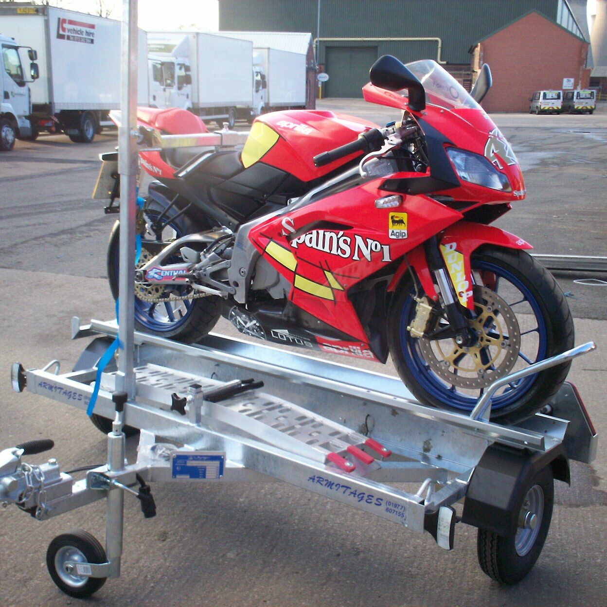 (See our winch up transverse motorbike trailer for the big boys capable of 370KG of bike)