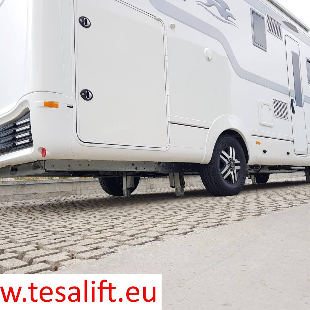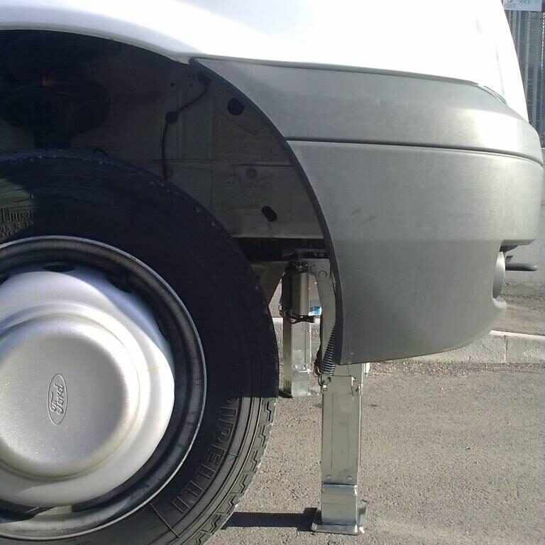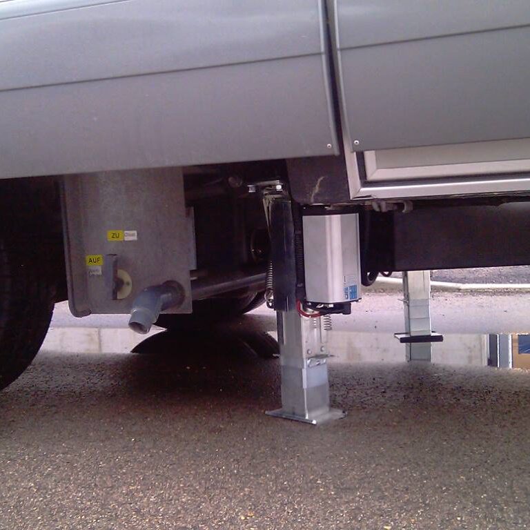Electromechanical self-levelling system for your Campervan / motorhome with significant thrust force, great lifting height with an extremely low weight.