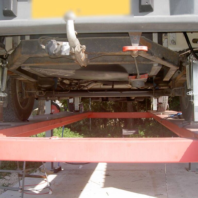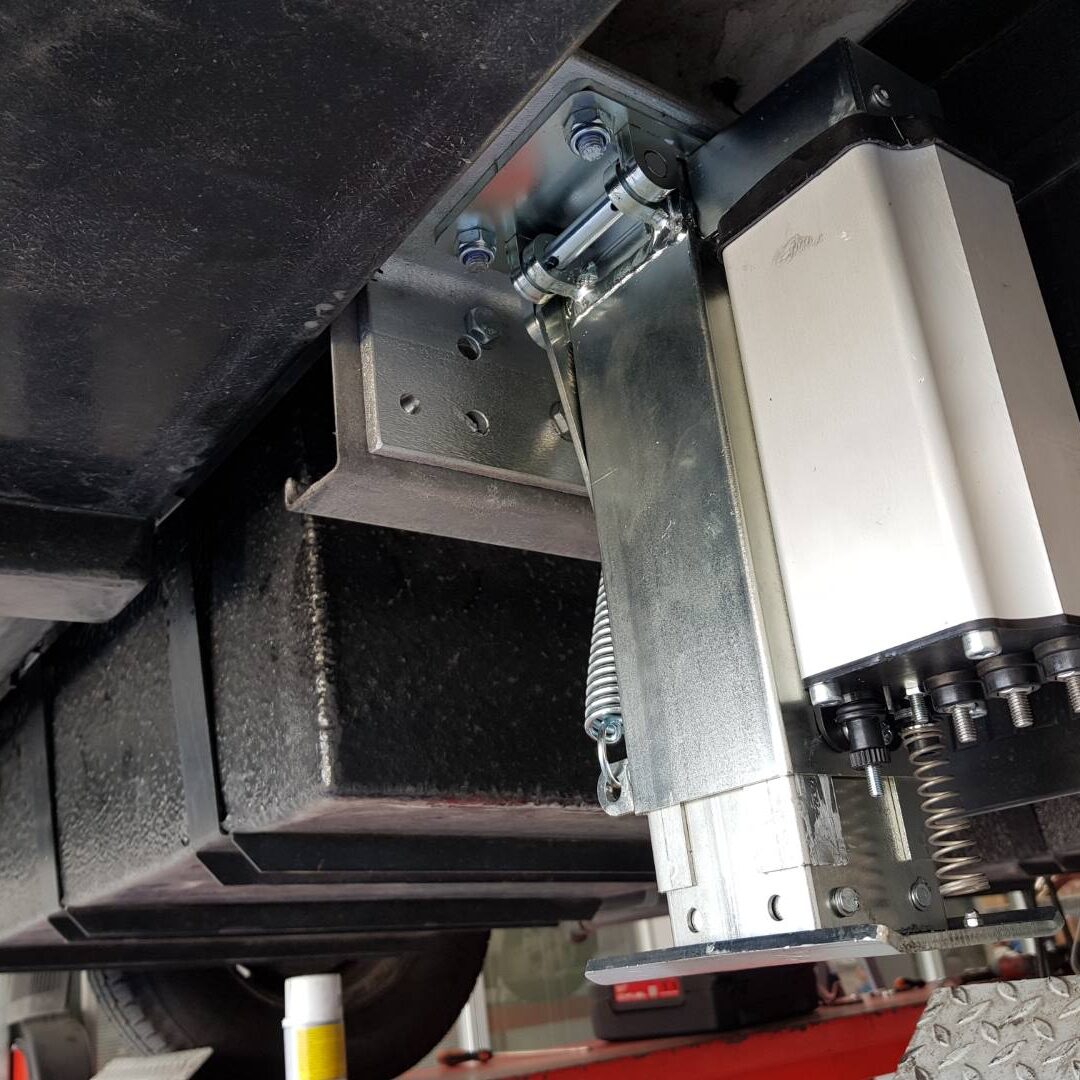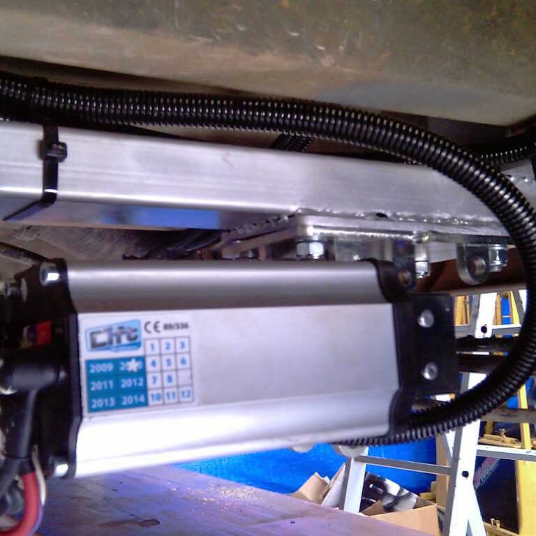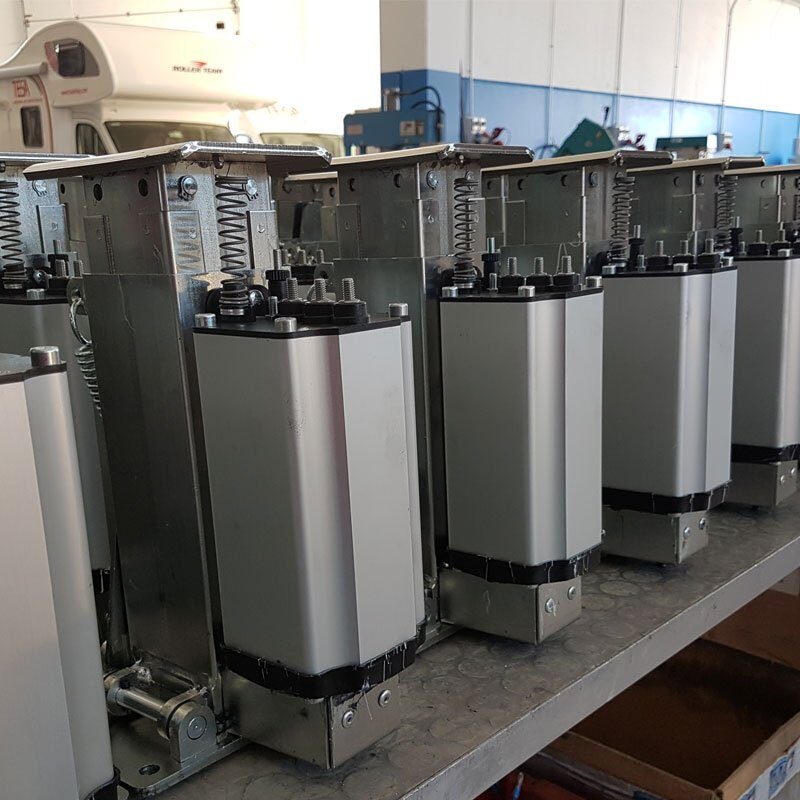 In the rest position the actuators are horizontal under the motorhome chassis, reducing to a minimum the overall dimensions, giving greater ground clearance.